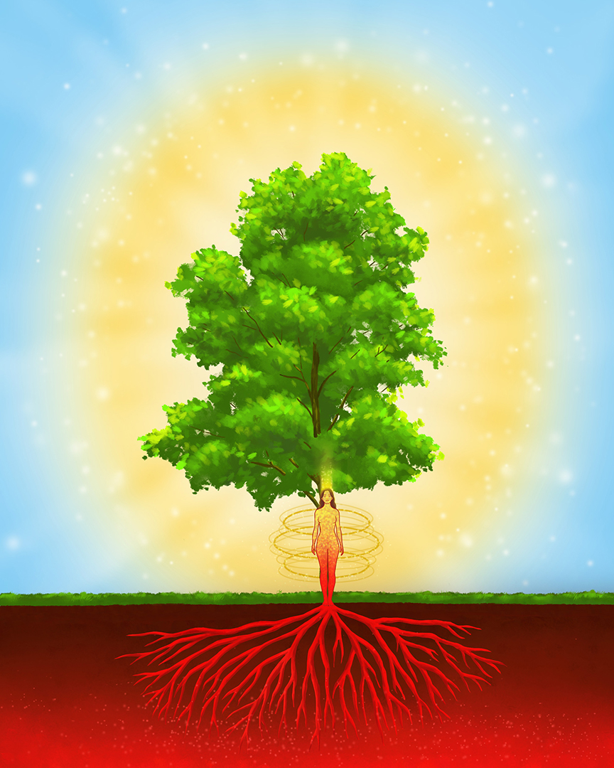 Dzisiaj bardzo źle się czułam. Miałam duże dolegliwości bólowe całego ciała. Poszłyśmy z Sarą na spacer do pobliskiego klonu. Kiedy stanęłam przy drzewie, poczułam ciepło. Zamknęłam oczy. Przed trzecim okiem zobaczyłam, jak drzewo otacza mnie złotymi nićmi energii. Zobaczyłam również złoty słup świata w mojej siódmej czakrze i czerwoną energię emanującą od korzeni do pierwszej czakry i stóp. Moje dolegliwości stopniowo zmniejszały się, a kiedy poczułam się dobrze, podziękowałam drzewu za wsparcie, które otrzymałam.